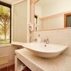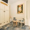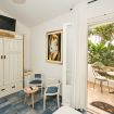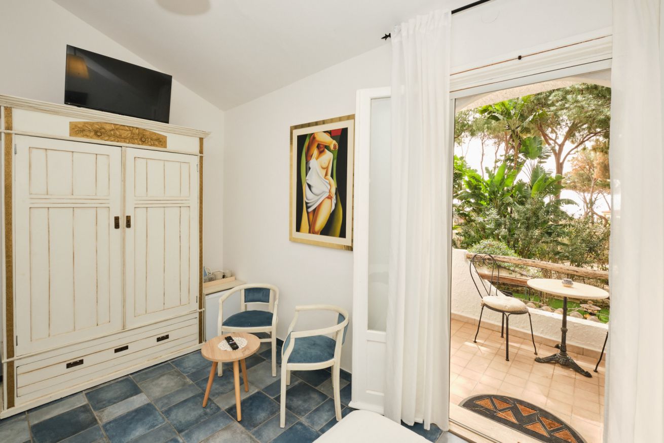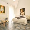 La camera Blu è ampia con un suo balcone vista mare, arredata in stile Shabby Chic